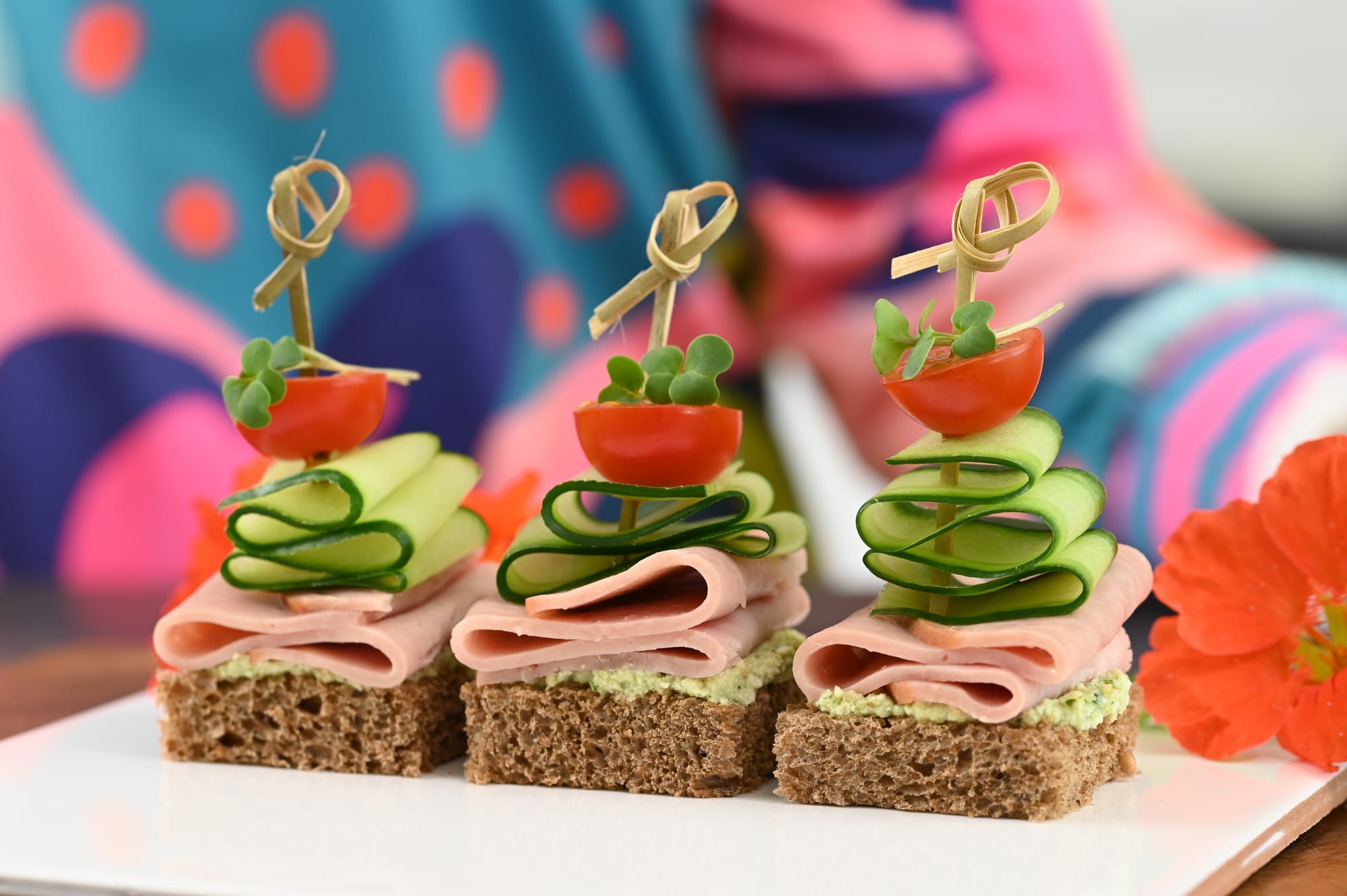 For smaller appetisers or canapés often a roll is too big. You can roll the meat and then cut it into smaller sections, or try this: