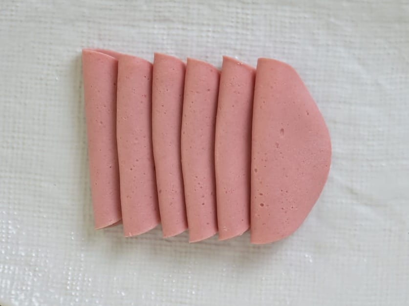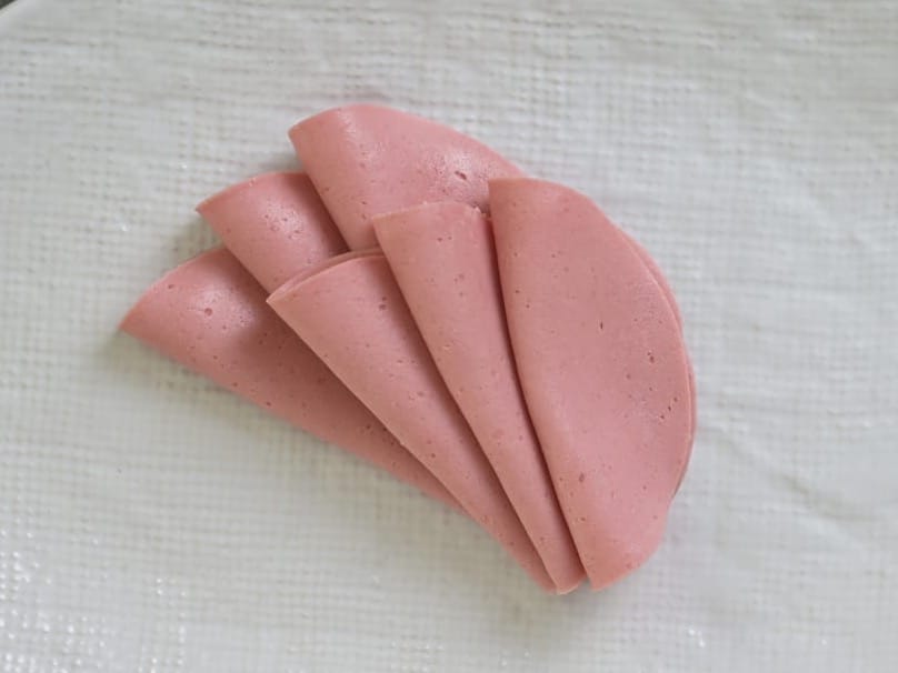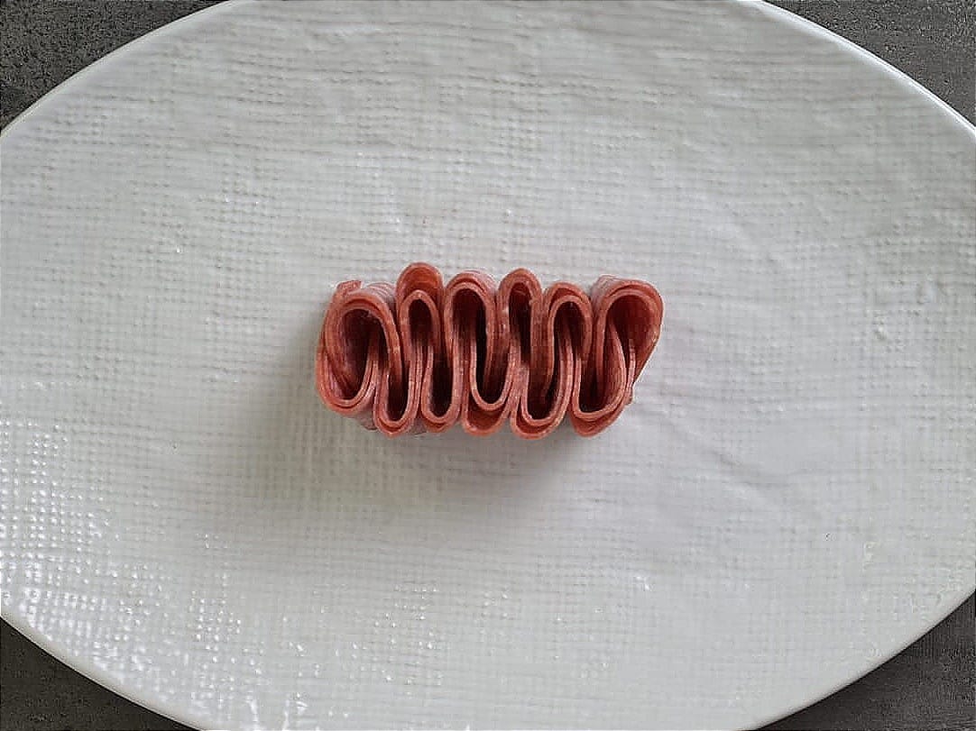 - Take a slice of cold meat and roll it up.