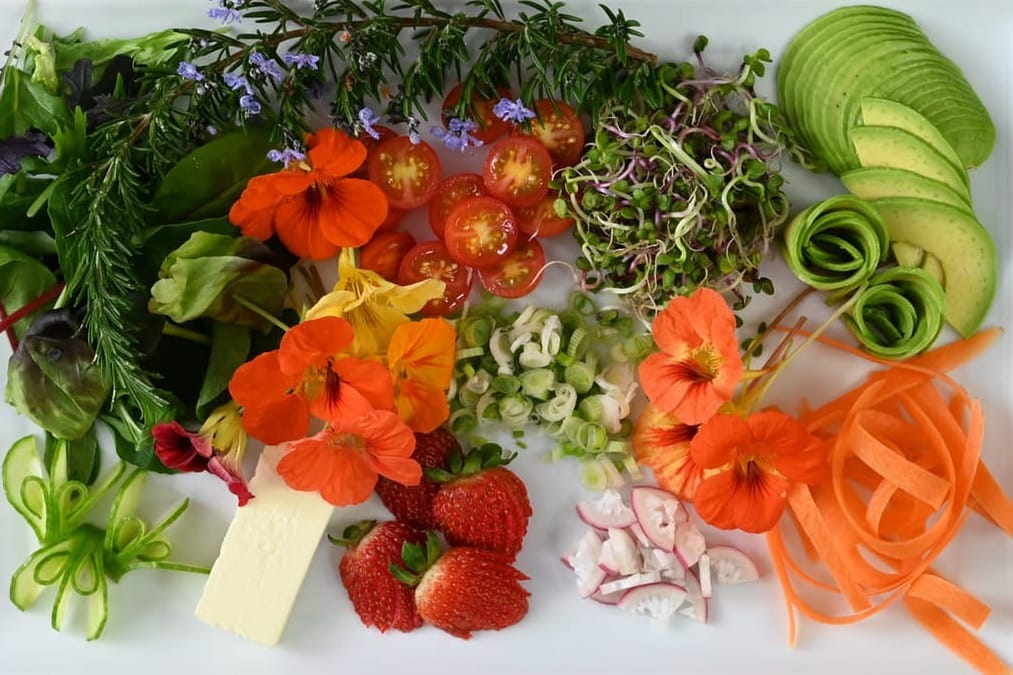 - Edible flowers like nasturtiums, pansies, or marigolds, or even the flowers on herb plants