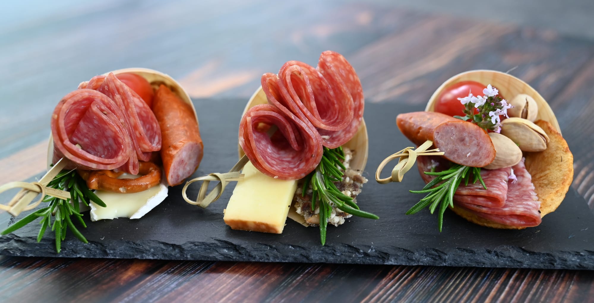 Charcuterie boats and cones.