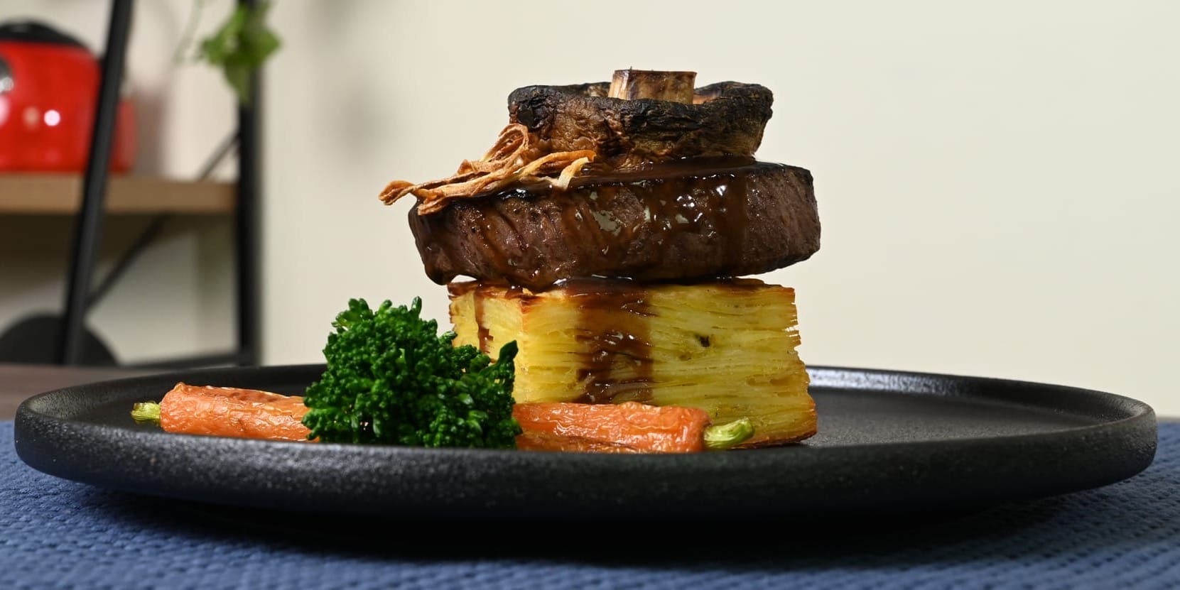 We plate it with tender beef medallions, bright spring vegetables, and crispy onion rings so you can see just how much of a difference those small presentation details make.