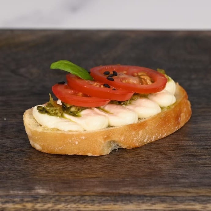- Cherry tomato with basil pesto and whipped feta