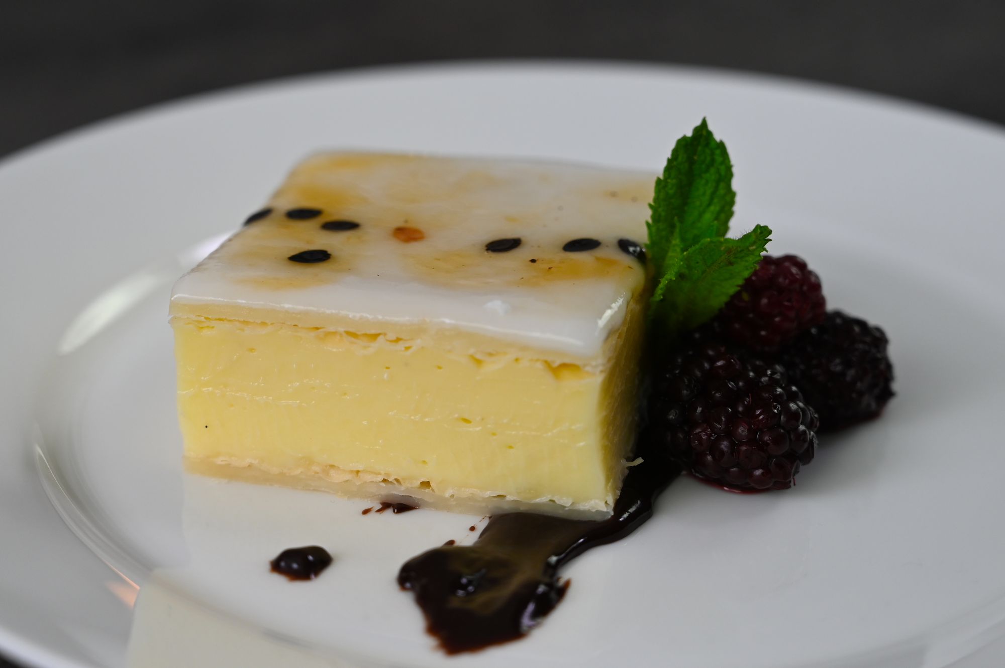 - Pour onto the top layer of custard square and carefully spread it all over.